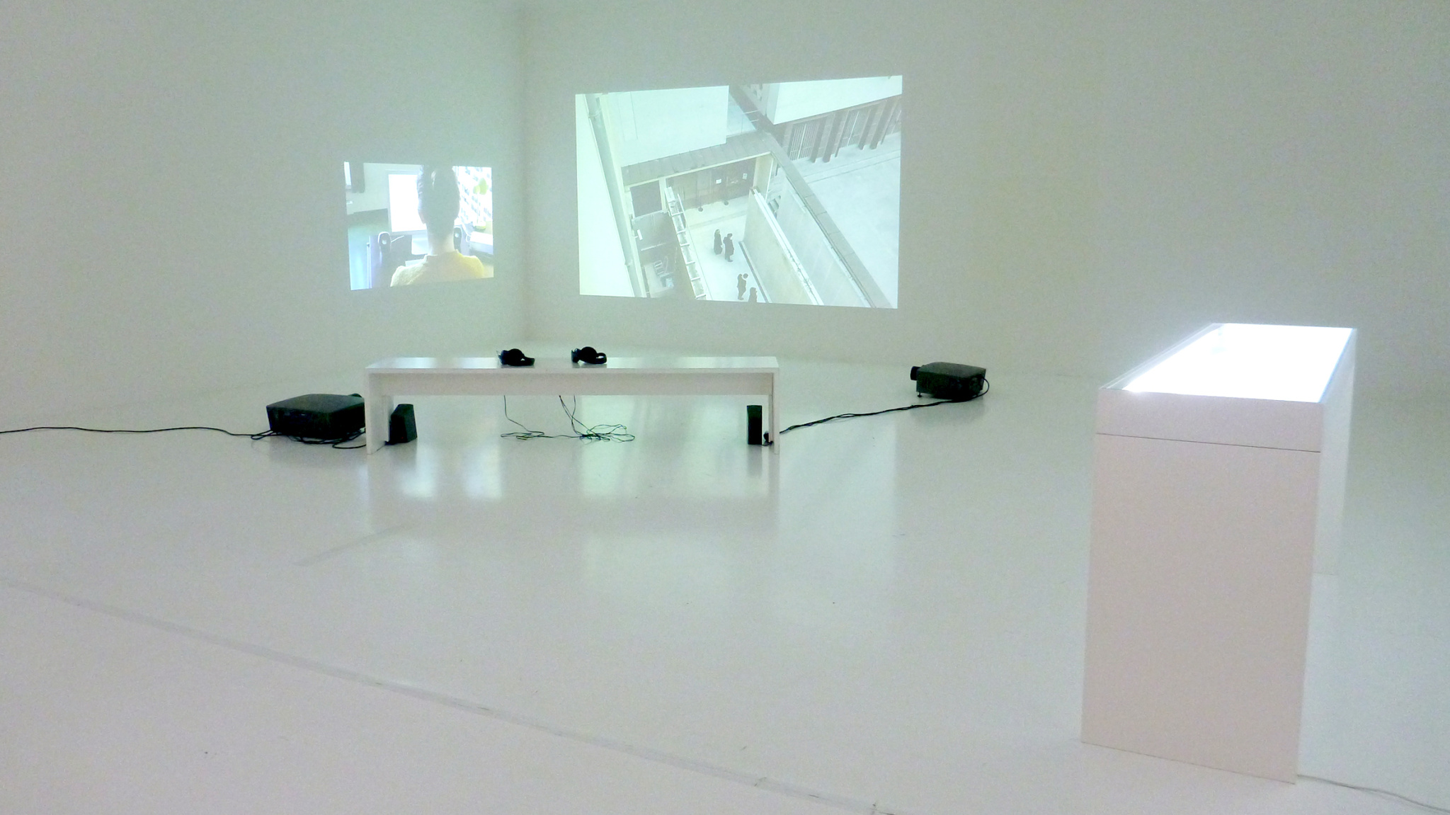 Site specific installation, Hinterräume, 8 Videos in the exhibition, Ablagerung, in the lace shop Caraco Basel, 2013